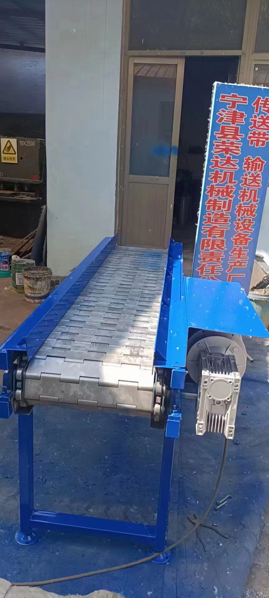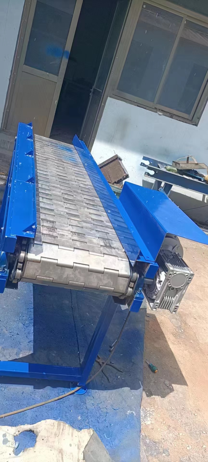 給黃山市屯溪閥門精密鍛造有限公司做的鏈板熱鍛造件傳送帶 輸送機(jī)完工 長度2米 有效寬度400毫米 1.5千瓦變頻調(diào)速 可以輸送熱紅高溫1250℃的金屬件