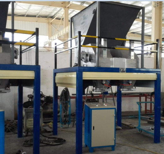 雙下料式設(shè)計(jì),是普通包裝機(jī)包裝能力的2倍。 適用于型煤球,蘭碳等固體塊狀或者顆粒粉末狀物料得包裝。13-14袋/分鐘 10-20噸/小時(shí)包裝能力 皮帶機(jī)高度3.5米 皮帶下面距離地面