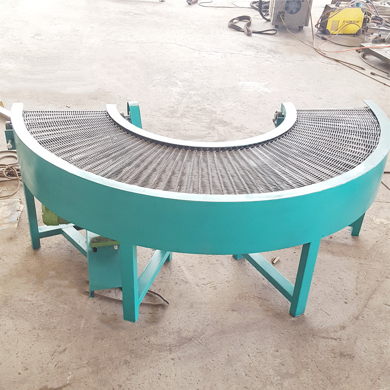 輸送機(jī)的規(guī)格是180度轉(zhuǎn)彎, 速度可調(diào) 變頻調(diào)速  高度700毫米。 轉(zhuǎn)彎網(wǎng)帶規(guī)格有效尺寸400毫米 絲是不銹鋼201材質(zhì) 絲徑2毫米 穿桿8毫米碳鋼材質(zhì) 絲孔10毫米   內(nèi)側(cè)鏈條節(jié)距27毫米 外側(cè)鏈條節(jié)距53毫米