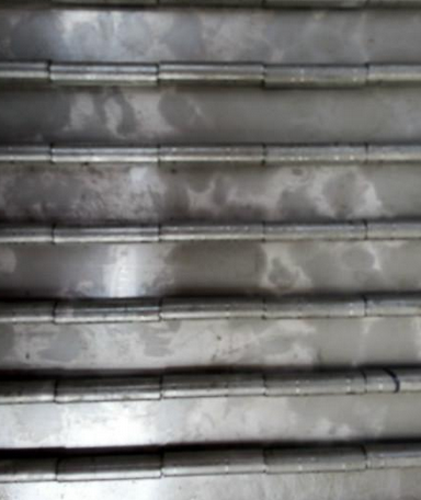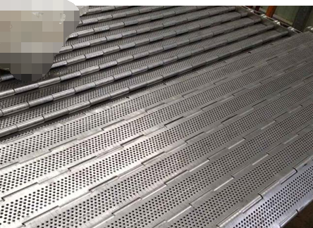 鏈板輸送帶非常堅(jiān)固,由不銹鋼鏈條驅(qū)動(dòng),采用不銹鋼板材生產(chǎn),適合用于輸送細(xì)小的高密度物件,輸送過程中運(yùn)轉(zhuǎn)平穩(wěn),安裝更換方便,使用壽命較長。用于中等和大負(fù)荷輸送。鋼板彎曲形成合葉,使用支軸將合葉和鏈條串在一起。兩端的鏈條可以使用開口銷或者墊圈來固定,使用開口銷方便拆卸,維護(hù)方便。鏈板大概分:1,按照材質(zhì)分:碳鋼鏈板輸送帶,鍍鋅鏈板輸送帶,不銹鋼201鏈板輸送帶,不銹鋼304鏈板輸送帶,其他不銹鋼鏈板輸送帶。2,根據(jù)外形來分:平鏈板輸送帶,帶橫擋板鏈板輸送帶,帶擋邊鏈板輸送帶,沖孔鏈板輸送帶(圓孔,長條孔),帶凸起鏈板輸送帶。3,根據(jù)輸送形式分:直輸鏈板輸送帶,拐彎的鏈板輸送帶。4,合頁鏈板輸送帶,排屑鏈板輸送帶,槽鋼鏈板輸送帶。5,雙節(jié)距鏈條鏈板帶,精密滾子鏈條鏈板輸送帶。