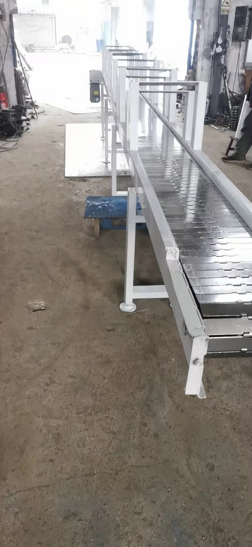 鍛造件輸送帶,鍛造件傳送帶的材質(zhì):鏈板是不銹鋼的,厚度3毫米。