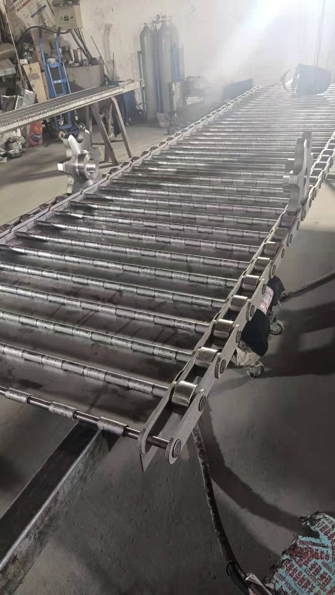 產(chǎn)品規(guī)格: 鏈板輸送帶31米,?有效寬度800毫米 鏈條節(jié)距101.6毫米,...