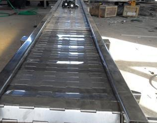 6、運(yùn)行平穩(wěn)可靠;鏈板輸送機(jī):又叫鏈板傳送機(jī)鏈板線,鏈板傳送帶。是一種利用循環(huán)往復(fù)的鏈條作為牽引動(dòng)力,以金屬板作為輸送承載體的一種輸送機(jī)械設(shè)備。國內(nèi)市場上有兩種鏈板輸送機(jī),一種是用鏈條,支軸和金屬板組成的輸送鏈板做成的輸送機(jī);一種是用帶彎板的鏈條和金屬板組成的金屬板輸送帶做成的鏈板輸送機(jī),另一種是平頂鏈鏈板輸送機(jī)。
