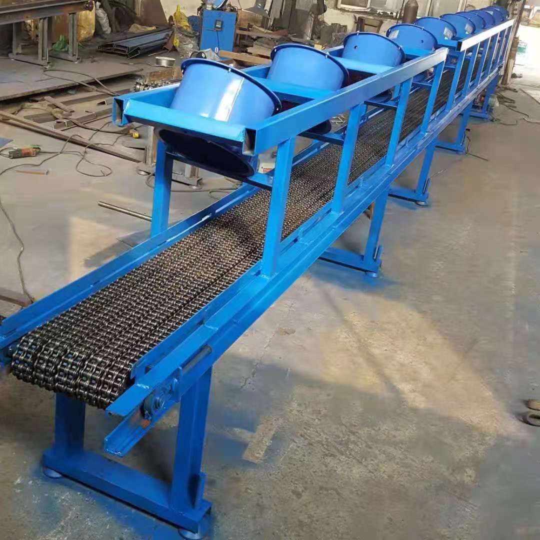 在鍛造行業(yè),鍛打件,熱鍛壓件的傳送現(xiàn)在都采用鏈條式輸送機(jī),鏈板式輸送機(jī),隔板槽鋼板輸送機(jī)。采用耐熱鋼平板或者耐熱鋼多排鏈條,來(lái)完成燒紅的鐵件的輸送,傳送,運(yùn)輸。