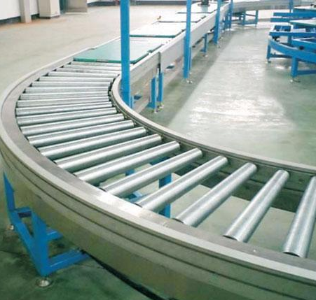 按布置形式可分為水平輸送滾筒線,傾斜輸送滾筒線和轉(zhuǎn)彎滾筒線。