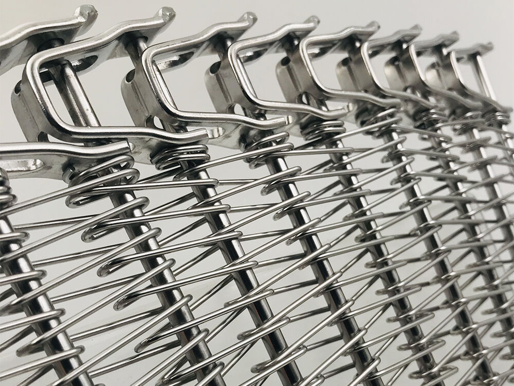 螺旋網(wǎng)采用高抗拉不銹鋼絲經(jīng)進(jìn)口數(shù)控網(wǎng)帶成型機(jī)加工生產(chǎn),網(wǎng)面強(qiáng)硬耐用,不易變形。網(wǎng)面平整,焊接牢固,轉(zhuǎn)彎性能好,可以實(shí)現(xiàn) 180度和360度的轉(zhuǎn)彎??梢猿休d較重的壓力和拉力,維修和拆卸極為方便,可以根據(jù)應(yīng)用設(shè)計(jì)網(wǎng)面有絲網(wǎng),網(wǎng)面無(wú)絲網(wǎng),網(wǎng)帶兩側(cè)加裝擋板或者網(wǎng)帶中間加裝鏈條。