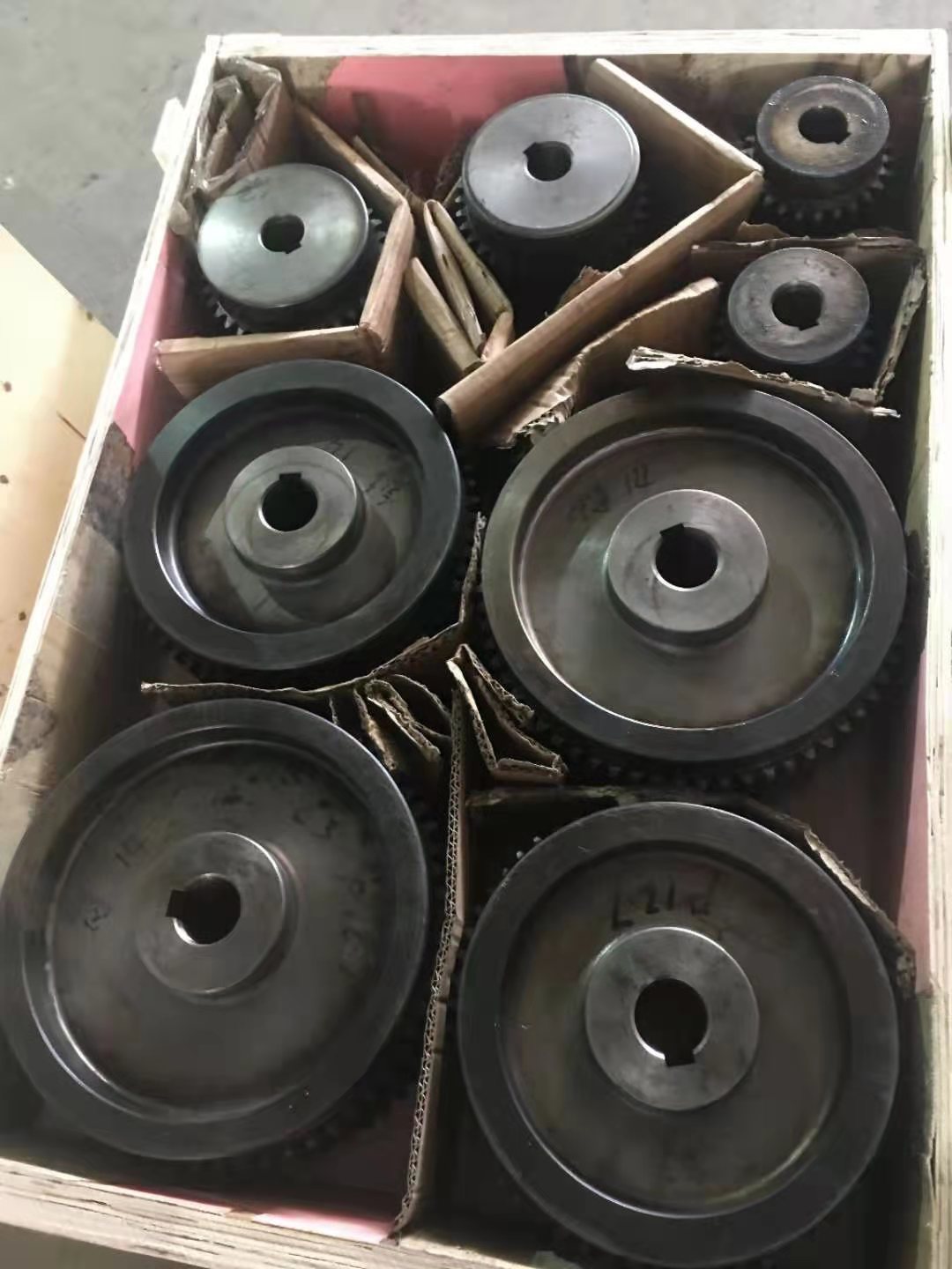 無聲鏈 齒形鏈輪  無聲鏈:也叫齒形鏈條,采用無聲齒形鏈輪帶動運轉(zhuǎn)傳動。寧津縣榮達機械制造有限責任公司定做各種無聲齒形鏈條,無聲齒形鏈輪。我們根據(jù)客戶自己的情況,客戶選型成功,我們根據(jù)客戶的數(shù)據(jù)非標定做各種齒形鏈條和無聲齒形鏈輪。齒形鏈條節(jié)距4.7625,6.35  9.525  12.7  15.875  19.05  25.4  31.75  38.1毫米的鏈條都能做,無聲齒形鏈輪根據(jù)客戶的齒數(shù)和外徑,內(nèi)孔,鍵槽定做。無聲齒形鏈條的獨特優(yōu)點:高速,無噪音,高承載傳動能力,轉(zhuǎn)矩大等等優(yōu)點,逐漸取代精密滾子鏈條和同步帶。