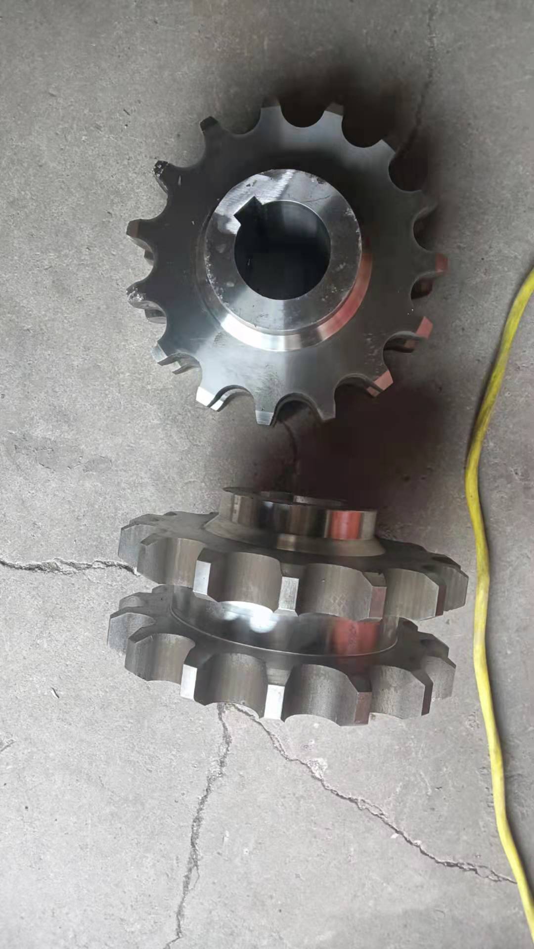 廠家直銷不銹鋼鏈輪的結(jié)構(gòu):鏈輪一種帶嵌齒式扣鏈齒的輪子,用以與節(jié)鏈環(huán)或纜索上節(jié)距準(zhǔn)確的塊體相嚙合。鏈輪被廣泛應(yīng)用于化工、紡織機(jī)械、食品加工、儀表儀器、石油等行業(yè)的機(jī)械傳動等。鏈輪結(jié)構(gòu)設(shè)計:1、鏈輪的齒形鏈輪齒形必須保證鏈節(jié)能平穩(wěn)自如地進(jìn)入和退出嚙合,盡量減少嚙合時的鏈節(jié)的沖擊和接觸應(yīng)力,而且要易于加工。它是由三段圓弧aa、ab、cd和一段直線bc構(gòu)成,簡稱三圓弧-直線齒形。齒形用標(biāo)準(zhǔn)刀具加工,在鏈輪工作圖上不必繪制端面齒形,只需在圖上注明"齒形按3RGB1244-85規(guī)定制造"即可,但應(yīng)繪制鏈輪的軸面齒形,其尺寸參閱有關(guān)設(shè)計手冊。2、鏈輪結(jié)構(gòu)小直徑鏈輪一般做成整體式,中等直徑鏈輪多做成輻板式,為便于搬運(yùn)、裝卡和減重,在輻板上開孔,大直徑鏈輪可做成組合式,此時齒圈與輪芯可用不同材料制造。例如C45,不銹鋼等材料。3、鏈輪材料鏈輪材料應(yīng)保證輪齒有足夠的強(qiáng)度和耐磨性,故鏈輪齒面一般都經(jīng)過熱處理,使之達(dá)到一定硬度。