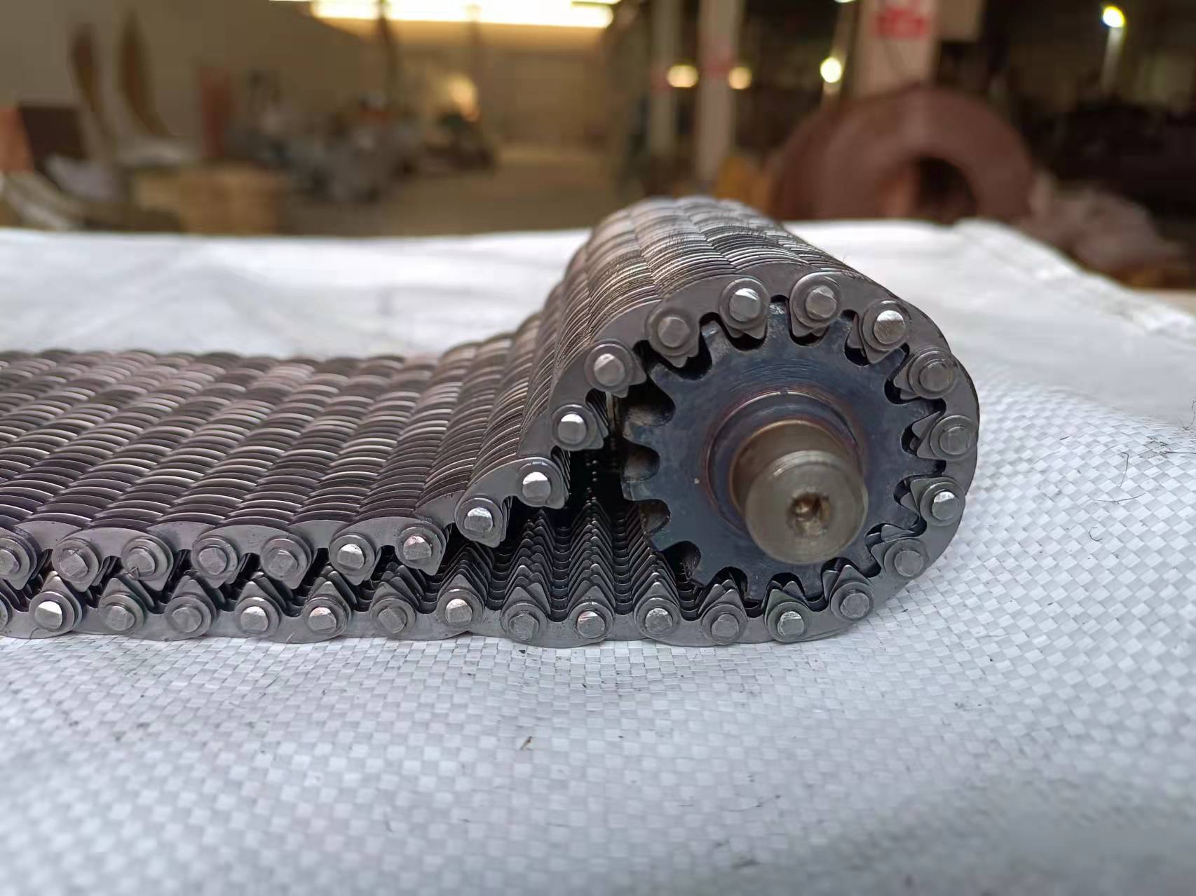 雙銷軸鉸鏈通常用兩個帶有凸面的銷軸。當(dāng)與鏈輪嚙合時鉸鏈齒形鏈條兩凸面相對滾動。典型雙銷軸鉸鏈條齒形鏈條。雙銷軸鉸鏈齒形鏈條通過消除滑動極大地減少了摩擦和磨損。雙銷軸鉸鏈條齒形鏈條實際上也消除了多邊形效應(yīng)影響。銷軸的彎曲表面起一種凸輪作用,節(jié)距在每個鏈節(jié)嚙合輪齒時會稍微增大后再減小,這種節(jié)距變化設(shè)計平衡了多邊效應(yīng)產(chǎn)生的速度變化
