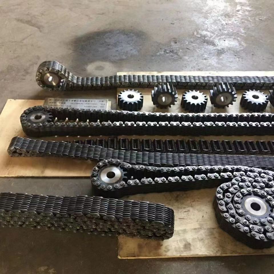 無聲鏈 齒形鏈輪  無聲鏈:也叫齒形鏈條,采用無聲齒形鏈輪帶動運轉傳動。寧津縣榮發(fā)齒輪廠定做各種無聲齒形鏈條,無聲齒形鏈輪。我們根據客戶自己的情況,客戶選型成功,我們根據客戶的數(shù)據非標定做各種齒形鏈條和無聲齒形鏈輪。齒形鏈條節(jié)距4.7625,6.35  9.525  12.7  15.875  19.05  25.4  31.75  38.1毫米的鏈條都能做,無聲齒形鏈輪根據客戶的齒數(shù)和外徑,內孔,鍵槽定做。無聲齒形鏈條的獨特優(yōu)點:高速,無噪音,高承載傳動能力,轉矩大等等優(yōu)點,逐漸取代精密滾子鏈條和同步帶。