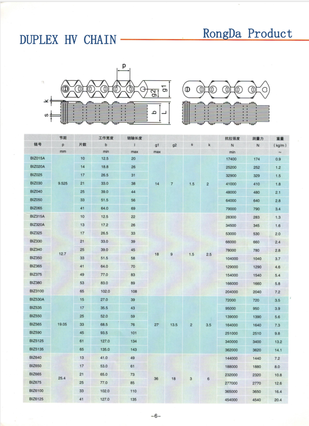 齒形鏈條簡介:齒形鏈又稱無聲鏈(Silent Chain),屬于傳動鏈的一種形式。我國的國家標準為:GB/T10855-2003《齒形鏈和鏈輪》。齒形鏈是由一系列的齒鏈板和導板交替裝配且銷軸或組合的鉸接元件連接組成,相鄰節(jié)距間為鉸連節(jié)。根據(jù)導向型式可分為:外導式齒形鏈、內(nèi)導式齒形鏈和雙內(nèi)導齒形鏈.齒形鏈又稱無聲鏈,屬于傳動鏈的一種形式。齒形鏈是一種應用廣泛的重要機械基礎件,主要用在高速、重載、低噪音、大中心距的工況下,其傳動性能優(yōu)于齒形帶傳動、齒輪傳動以及磙子鏈傳動,以成為眾多行業(yè)對傳動形式之一,以嚙合形式分可分為內(nèi)嚙合齒形鏈、外嚙合齒形鏈和內(nèi)外復合嚙合齒形鏈,其中內(nèi)外復合嚙合齒形鏈的噪音小,應用也廣泛。