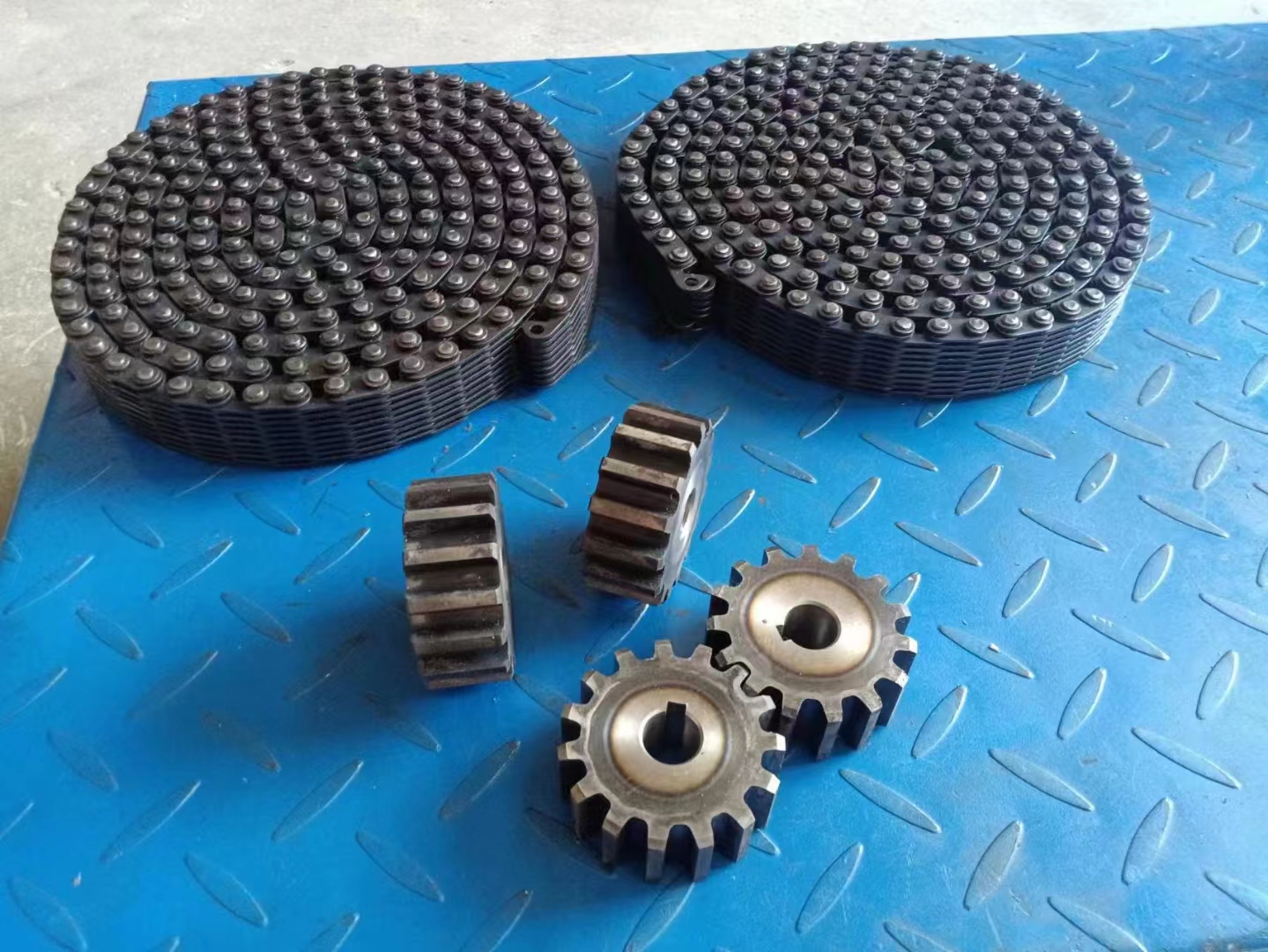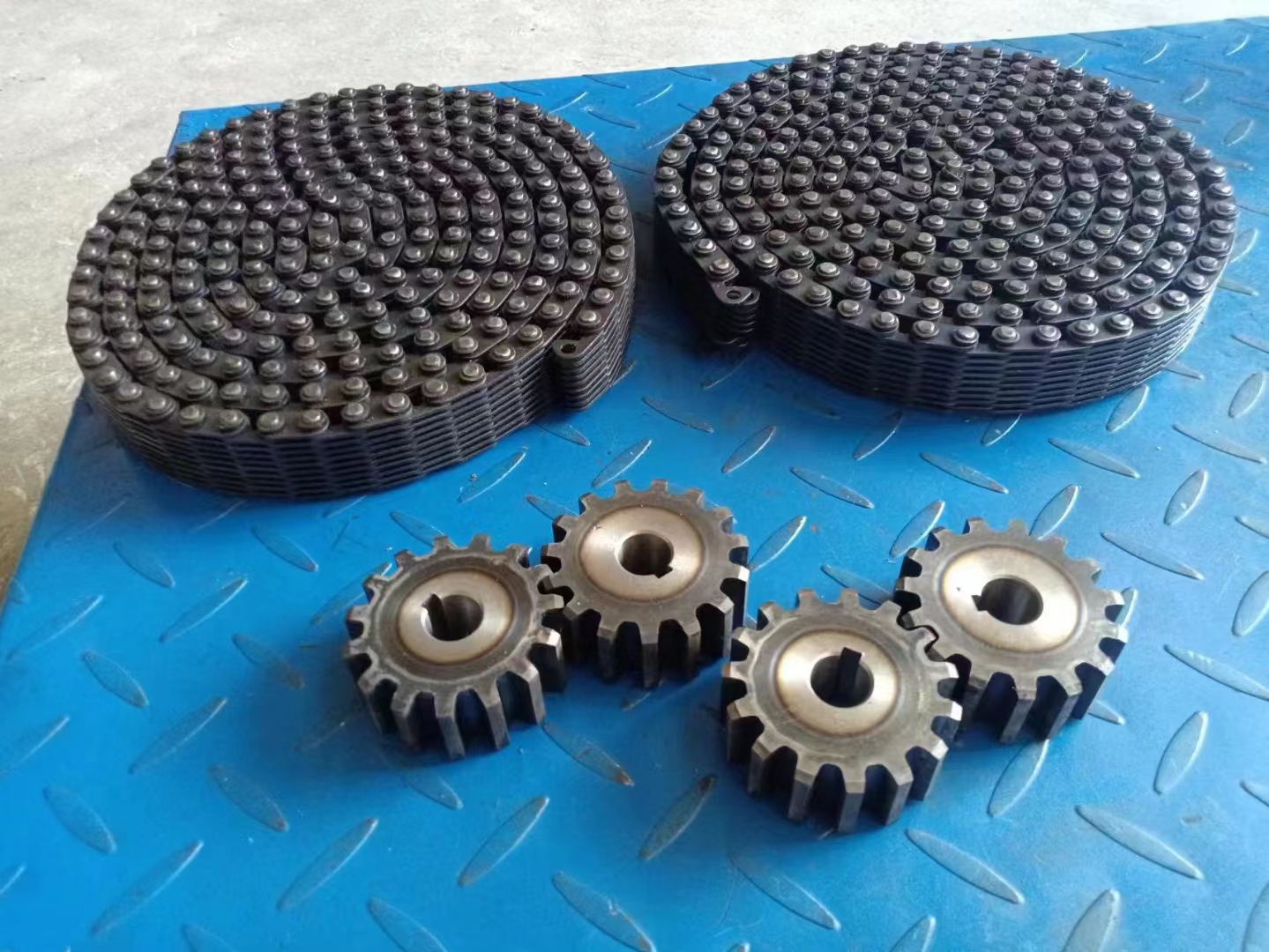 無聲鏈 齒形鏈輪  無聲鏈:也叫齒形鏈條,采用無聲齒形鏈輪帶動運轉(zhuǎn)傳動。寧津縣榮發(fā)齒輪廠定做各種無聲齒形鏈條,無聲齒形鏈輪。我們根據(jù)客戶自己的情況,客戶選型成功,我們根據(jù)客戶的數(shù)據(jù)非標定做各種齒形鏈條和無聲齒形鏈輪。齒形鏈條節(jié)距4.7625,6.35  9.525  12.7  15.875  19.05  25.4  31.75  38.1毫米的鏈條都能做,無聲齒形鏈輪根據(jù)客戶的齒數(shù)和外徑,內(nèi)孔,鍵槽定做。無聲齒形鏈條的獨特優(yōu)點:高速,無噪音,高承載傳動能力,轉(zhuǎn)矩大等等優(yōu)點,逐漸取代精密滾子鏈條和同步帶。
