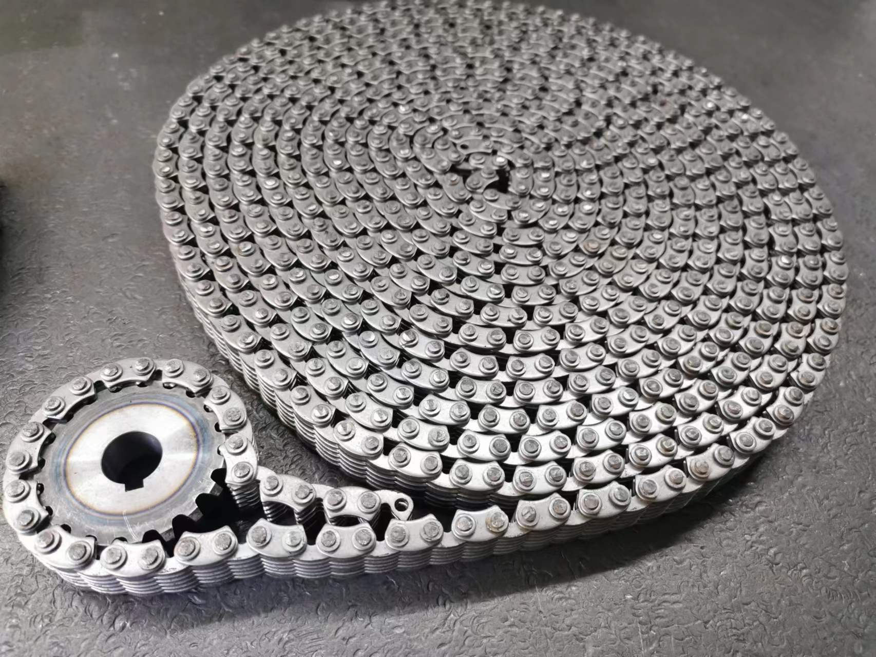 無聲鏈 齒形鏈輪  無聲鏈:也叫齒形鏈條,采用無聲齒形鏈輪帶動運轉(zhuǎn)傳動。寧津縣榮發(fā)齒輪廠定做各種無聲齒形鏈條,無聲齒形鏈輪。我們根據(jù)客戶自己的情況,客戶選型成功,我們根據(jù)客戶的數(shù)據(jù)非標(biāo)定做各種齒形鏈條和無聲齒形鏈輪。齒形鏈條節(jié)距4.7625,6.35  9.525  12.7  15.875  19.05  25.4  31.75  38.1毫米的鏈條都能做,無聲齒形鏈輪根據(jù)客戶的齒數(shù)和外徑,內(nèi)孔,鍵槽定做。無聲齒形鏈條的獨特優(yōu)點:高速,無噪音,高承載傳動能力,轉(zhuǎn)矩大等等優(yōu)點,逐漸取代精密滾子鏈條和同步帶。