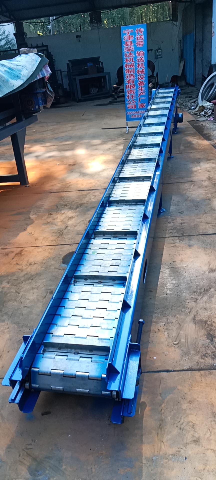 鏈板式輸送機(jī),利用固接在牽引鏈上的一系列鏈板在水平或傾斜方向輸送物料的輸送機(jī),以單片鋼板鉸接成環(huán)帶作為運(yùn)輸機(jī)的牽引和承載構(gòu)件承載面具有橫向隔片置于槽箱中驅(qū)動(dòng)環(huán)帶借隔片將煤刮運(yùn)輸出。它由驅(qū)動(dòng)機(jī)構(gòu)、張緊裝置、牽引鏈、板條、驅(qū)動(dòng)及改向鏈輪、機(jī)架等部分組成。在冶金、煤炭、化工、電力、機(jī)械制造及國民經(jīng)濟(jì)的其他工業(yè)部門中均得到了廣泛的應(yīng)用。