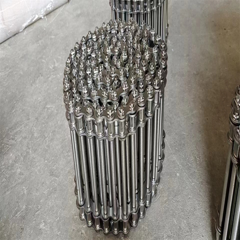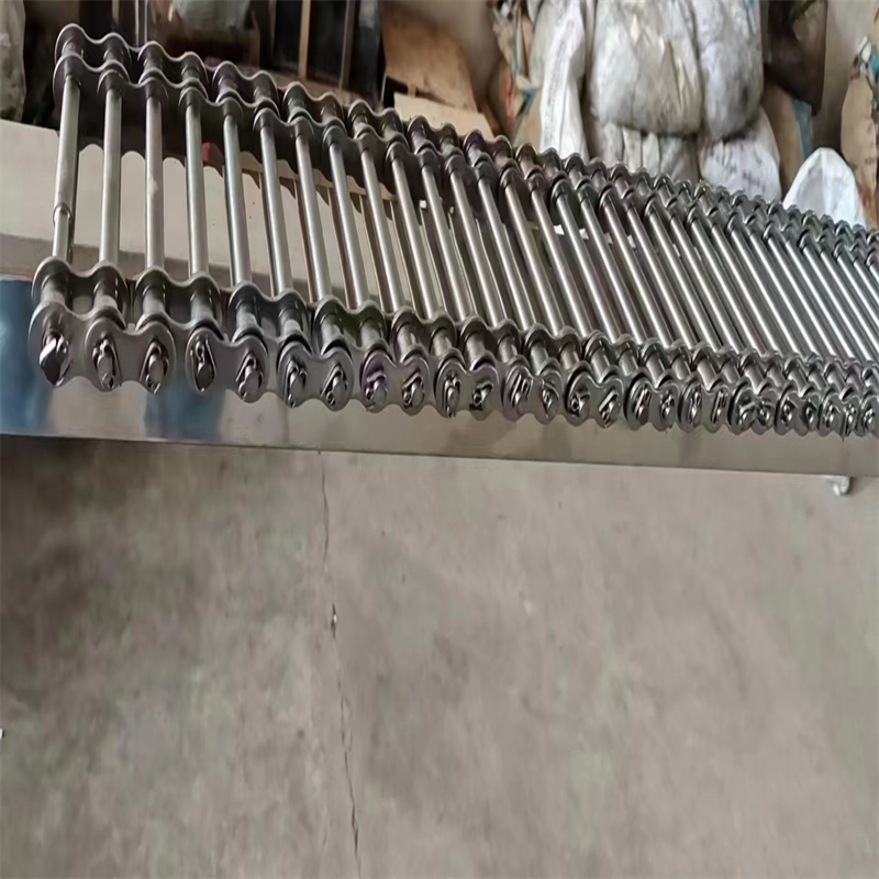 鏈桿輸送帶也叫棒條網(wǎng)帶,串桿網(wǎng)帶??捎面湕l傳送,也可用U型鏈條傳送。故此可以稱(chēng)鏈條網(wǎng)帶和U型鏈條網(wǎng)帶。 這種鏈桿式網(wǎng)帶采用鏈條傳動(dòng),適合用于大型和重型傳送,其運(yùn)動(dòng)平穩(wěn)、氣力大,網(wǎng)面相對(duì)受力小,能對(duì)輸送網(wǎng)帶起到保護(hù)用,價(jià)格較貴,但使用壽命長(zhǎng)。