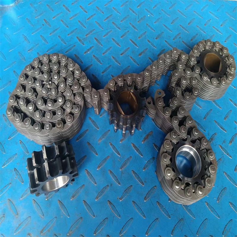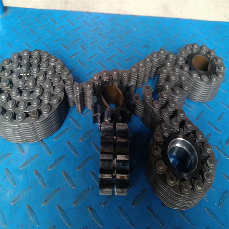 無聲鏈 齒形鏈輪 無聲鏈:也叫齒形鏈條,采用無聲齒形鏈輪帶動運轉傳動。寧津縣榮發(fā)齒輪廠定做各種無聲齒形鏈條,無聲齒形鏈輪。我們根據客戶自己的情況,客戶選型成功,我們根據客戶的數據非標定做各種齒形鏈條和無聲齒形鏈輪。齒形鏈條節(jié)距4.7625,6.35 9.525 12.7 15.875 19.05 25.4 31.75 38.1毫米的鏈條都能做,無聲齒形鏈輪根據客戶的齒數和外徑,內孔,鍵槽定做。無聲齒形鏈條的獨特優(yōu)點:高速,無噪音,高承載傳動能力,轉矩大等等優(yōu)點,逐漸取代精密滾子鏈條和同步帶。