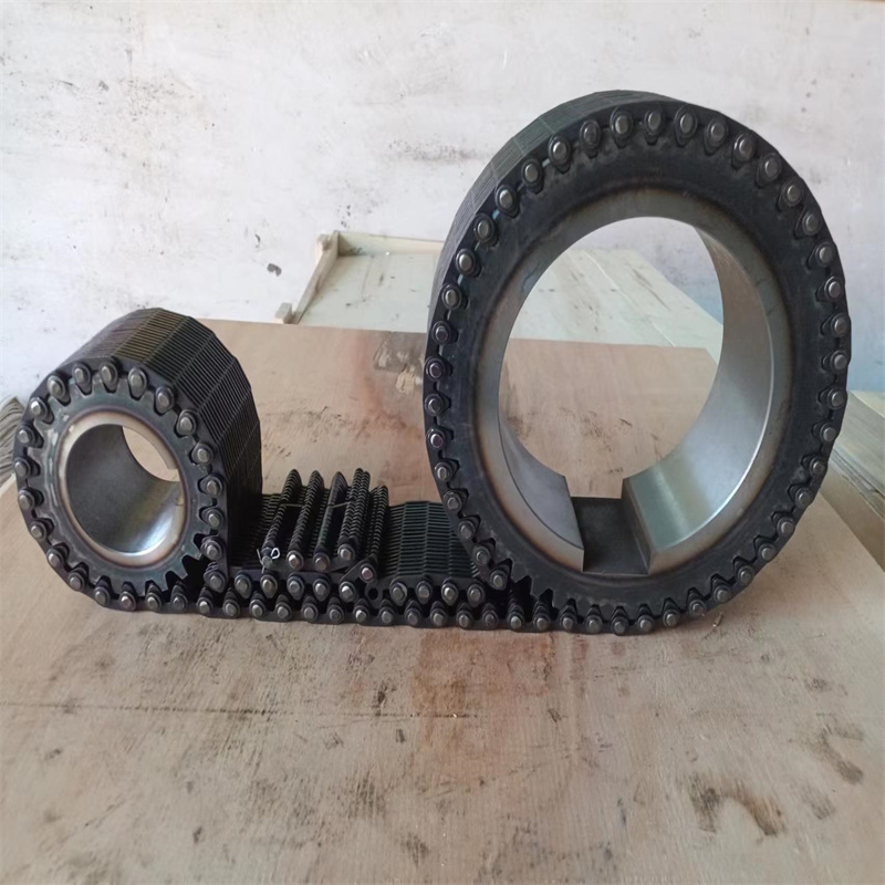 無聲鏈 齒形鏈輪  無聲鏈:也叫齒形鏈條,采用無聲齒形鏈輪帶動運轉(zhuǎn)傳動。寧津縣榮發(fā)齒輪廠定做各種無聲齒形鏈條,無聲齒形鏈輪。我們根據(jù)客戶自己的情況,客戶選型成功,我們根據(jù)客戶的數(shù)據(jù)非標定做各種齒形鏈條和無聲齒形鏈輪。齒形鏈條節(jié)距4.7625,6.35  9.525  12.7  15.875  19.05  25.4  31.75  38.1毫米的鏈條都能做,無聲齒形鏈輪根據(jù)客戶的齒數(shù)和外徑,內(nèi)孔,鍵槽定做。無聲齒形鏈條的獨特優(yōu)點:高速,無噪音,高承載傳動能力,轉(zhuǎn)矩大等等優(yōu)點,逐漸取代精密滾子鏈條和同步帶。