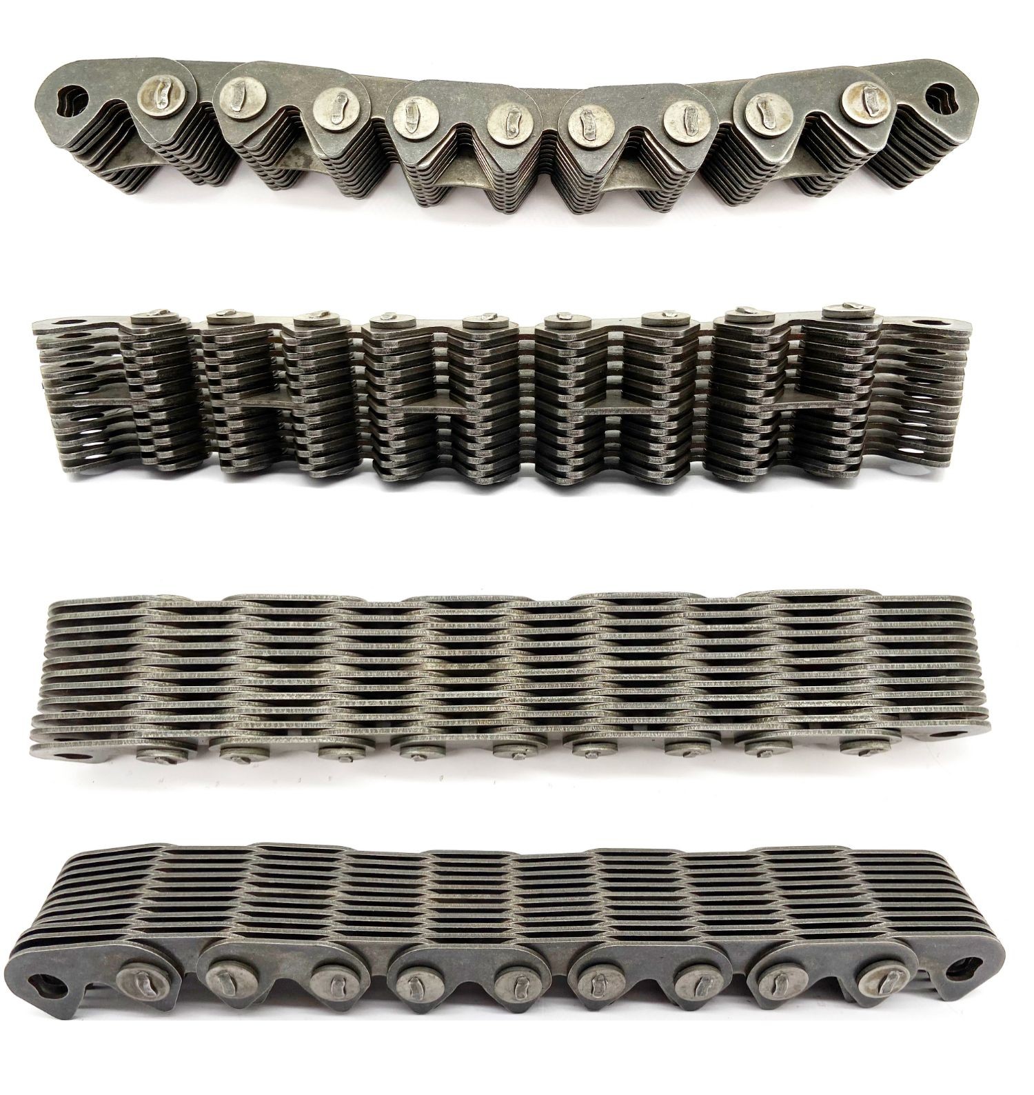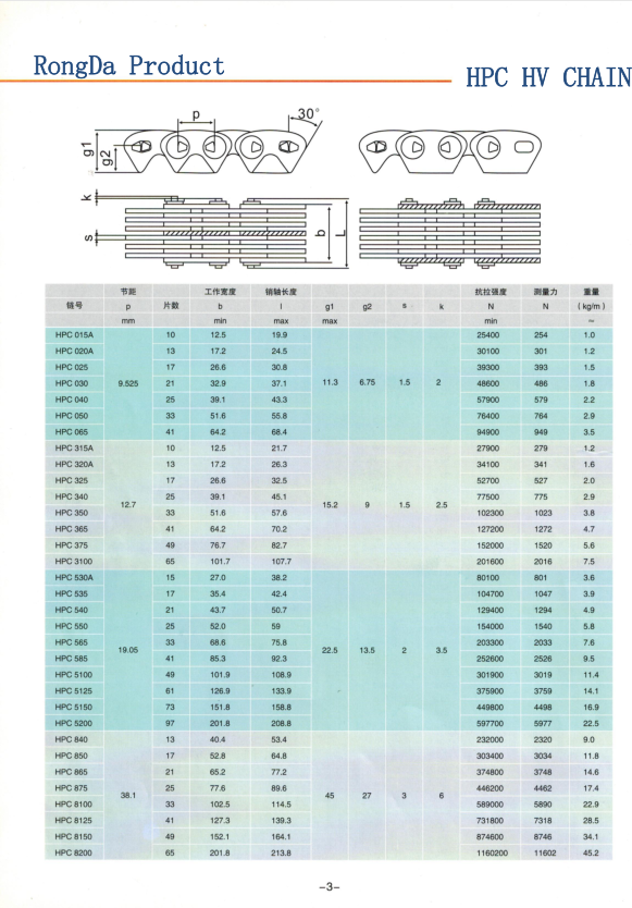 HDL585 哈瓦齒形鏈條 HDL325 無聲齒形鏈條 HDL650哈瓦齒形鏈條鏈輪 HDL3100 HDL1080 HDL550 齒形鏈條傳動有著噪音小,可靠性較高,運動精度高(其運轉(zhuǎn)平滑性強于任何其他類型的鏈條)等比較突出的特點,所有齒形鏈條已成為一種應(yīng)用廣泛的重要基礎(chǔ)零件部件。特別是在高速,重載,低噪音要求,大中心距離的工況下,其傳動性能優(yōu)于齒形帶傳動,普通齒輪傳動及滾子鏈條傳動,齒形鏈條已經(jīng)發(fā)展為汽車,機床,汽輪機,石油機械,軍用機械等眾多行業(yè)的傳動類型之一,如機床主傳動,發(fā)動機正時傳動及重要的操縱機構(gòu)等等。另外齒形鏈條在高速運轉(zhuǎn)時,往往還要達(dá)到低噪音甚至靜音,所有齒形鏈條在許多場合還叫做靜音鏈條或者無聲鏈條,外導(dǎo)式齒形鏈條(圓銷式)內(nèi)導(dǎo)齒形鏈條滾銷式 雙內(nèi)導(dǎo)齒形鏈條 軸瓦襯瓦式齒形鏈條 雙面嚙合齒形鏈條 帶過渡彎板鏈節(jié)的齒形鏈條 單面齒形鏈條 雙面?zhèn)鲃育X形鏈條 傳動齒形鏈條目前國內(nèi)使用的標(biāo)準(zhǔn),GB/T 10855-2003,Inverted tooth silent chain and  sprocket
