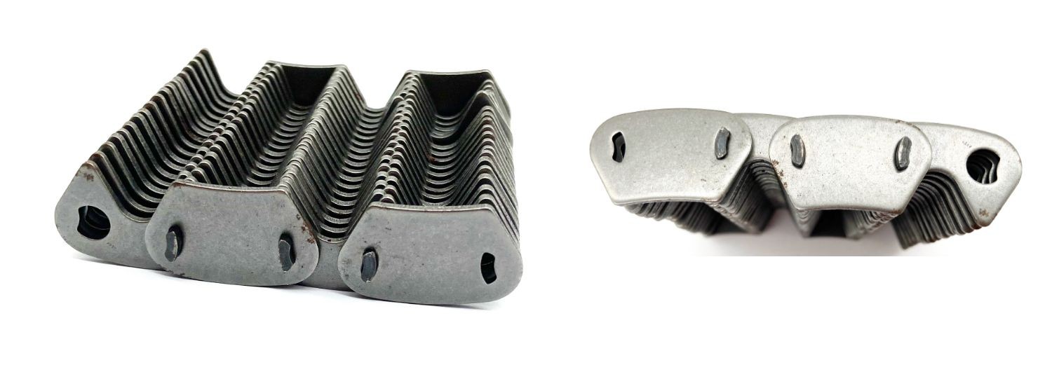 經(jīng)常用到的齒形鏈條型號(hào) :鏈號(hào)SC3 節(jié)距9.525毫米 CL06 最小分叉高度0.59毫米  ;鏈號(hào)SC4 節(jié)距12.7毫米 CL08 C4 最小分叉高度0.787毫米;鏈號(hào)SC5 節(jié)距15.875毫米 CL10 最小分叉0.985毫米  ;鏈號(hào)SC6 節(jié)距19.05毫米 CL12最小分叉1.181毫米 ;SC8 節(jié)距25.4毫米 CL16最小分叉高度1575毫米 ;SC10 節(jié)距31.75毫米 CL20 最小分叉高度1.969毫米;SC16 節(jié)距38.1毫米 CL24 最小分叉高度3.150毫米