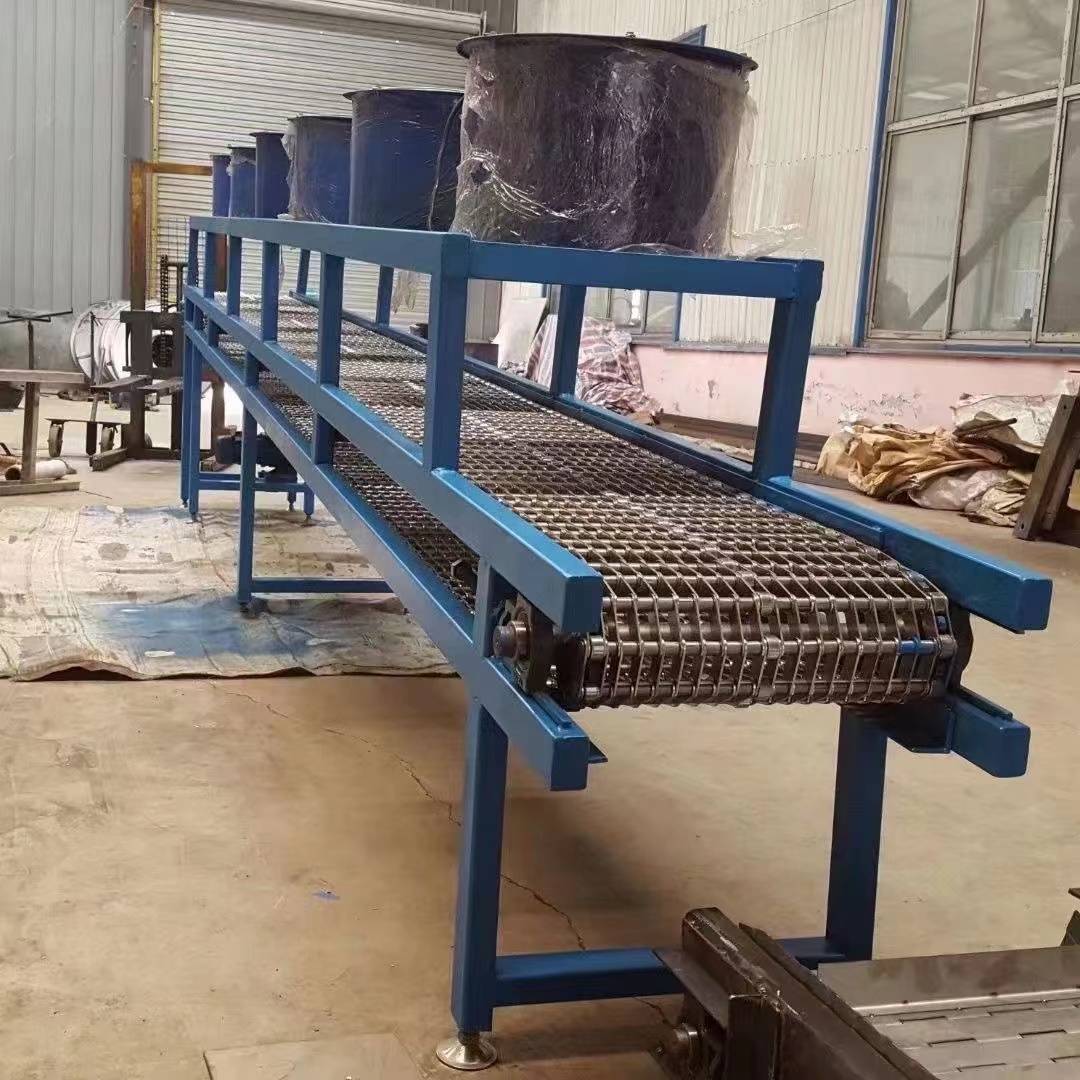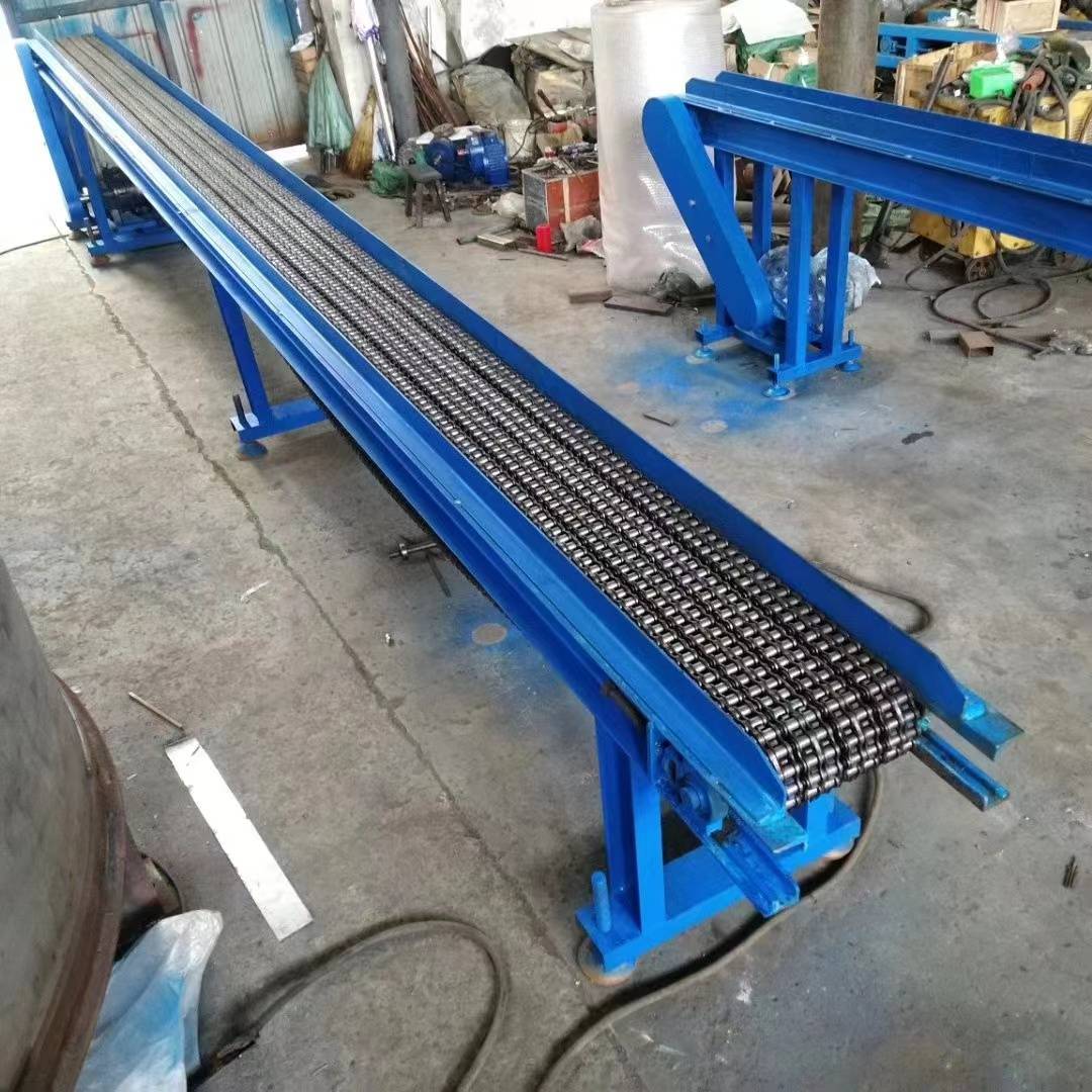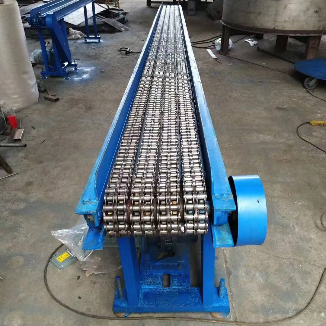 輸送鏈 鍛造自動化輸送鏈 傳送鍛壓輸送機,鍛打輸送機,熱鍛紅沖輸送機,鍛造熱處理淬火提升機,熱鍛造件降溫風冷輸送機 鏈條輸送機 鏈板輸送機 板式提升機 鏈條片輸送機 帶風機降溫輸送機 滾筒輸送機 熱鍛造件輸送機:是用于鍛造行業(yè),用來輸送鍛造件的一種傳送帶,可以用于輸送圓鋼,加熱爐出來的紅毛坯,紅熱方鋼圓鋼,用于各個鍛壓機之間鍛件的輸送,用于水槽油槽鍛造件的熱處理淬火,用于熱鍛造件的風冷水冷降溫輸送。鍛造生產(chǎn)線的各個輸送傳送。 功能特點 1.速度快慢可調(diào),有無極調(diào)速電機和變頻器控制柜控制速度快慢,操作簡單 2,輸送速度快,精密鏈條適合高速傳送,耐磨,適合長時間高速運轉(zhuǎn)傳送 3,輸送機可連續(xù)輸送,可間歇性輸送。 4,輸送機的寬度根據(jù)被輸送的金屬件的大小靈活的設(shè)計輸送機的寬度 長度根據(jù)輸送的距離來設(shè)計。5,輸送機可以做成水平直輸送的,提升爬坡輸送的。第一集:輸送鏈 耐高溫傳送鏈條 鍛造輸送鏈 鍛造輸送機 鍛造輸送鏈 冷卻鏈 降溫輸送鏈 熱鍛造輸送鏈 鍛造輸送鏈具有耐高溫、不變形等特點,且重量輕而強度大,耐磨性好,抗沖擊力強,維護性好等優(yōu)勢。榮達擁有單排輸送鏈、雙排輸送鏈、串桿輸送鏈、板鏈輸送鏈、網(wǎng)鏈輸送鏈等不同形態(tài)的產(chǎn)品。根據(jù)不同類型的產(chǎn)品,工藝方式的不同,滿足客戶的各種不同應(yīng)用場景需求。 榮達機械可以根據(jù)客戶的使用要求和現(xiàn)場安裝的需要,設(shè)計、制造各種規(guī)格的產(chǎn)品和設(shè)備,為客戶提供合理價格的優(yōu)質(zhì)產(chǎn)品。1,耐高溫2,耐磨性好 3,運行穩(wěn)定4,抗沖擊力強 5,類型多并可定制