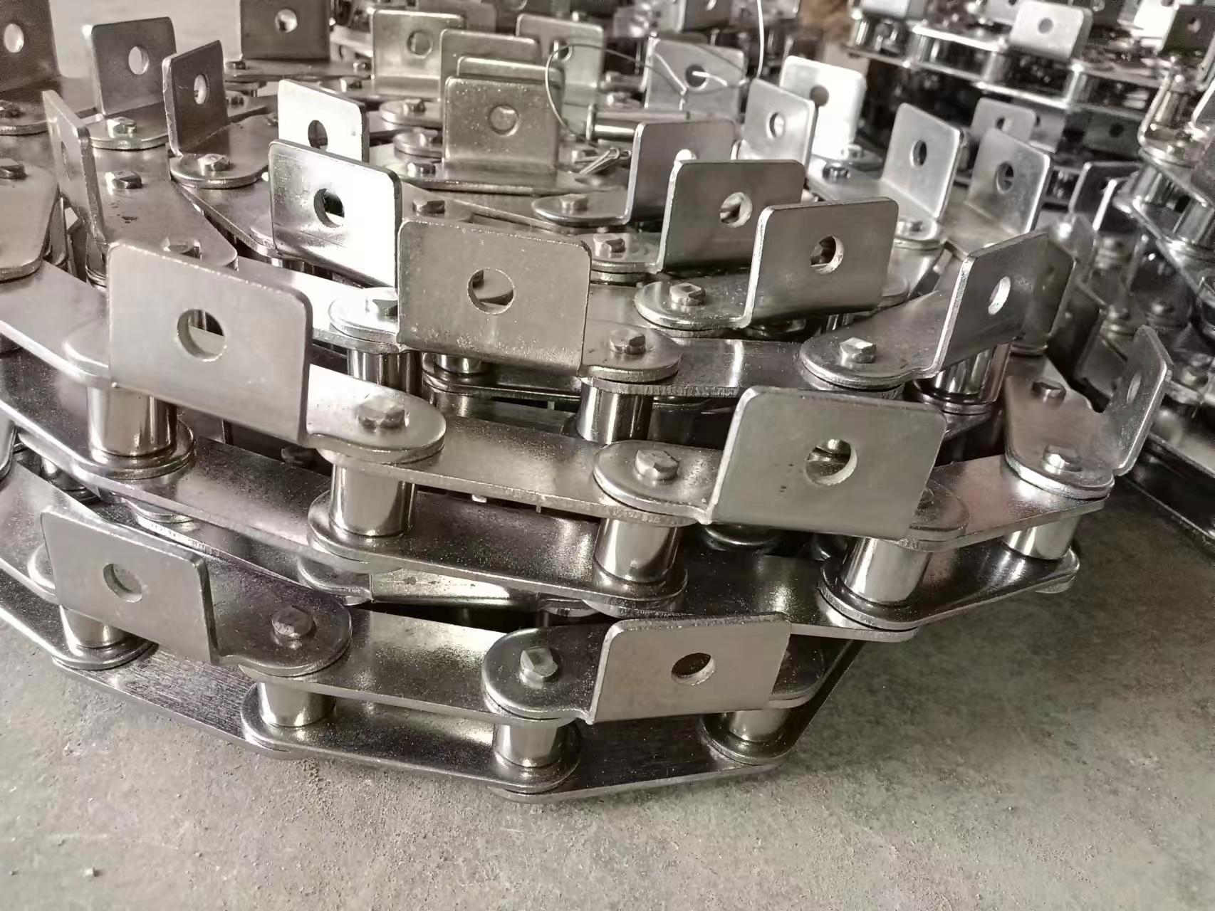 不銹鋼鏈條有大滾子、小滾子之分;鏈板厚度有常規(guī)、加厚2種;