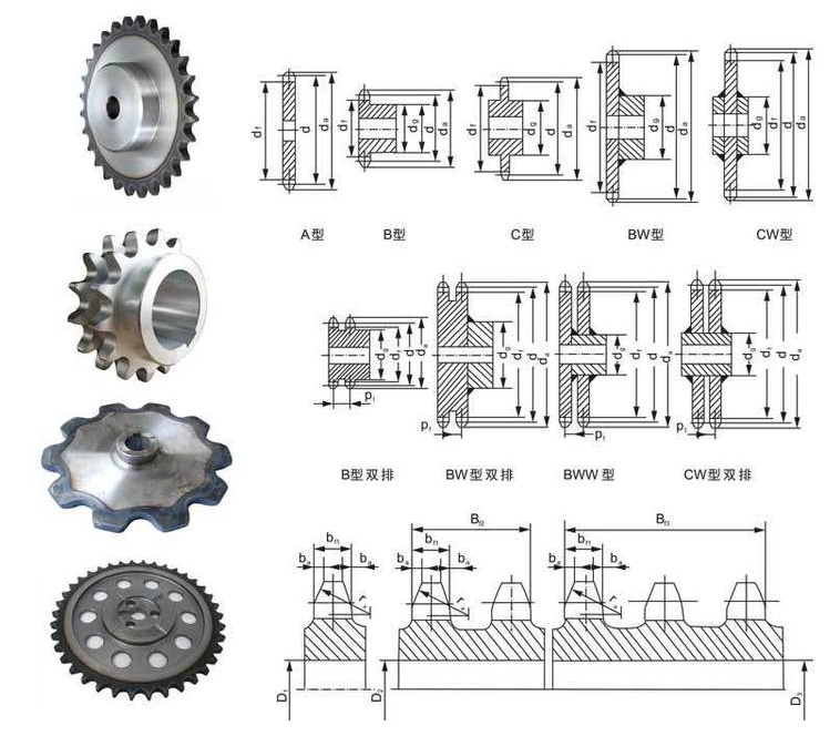 鏈輪介紹:鏈輪是一種帶嵌齒式扣鏈齒的輪子,用以與節(jié)鏈環(huán)或纜索上節(jié)距準(zhǔn)確的塊體相嚙合。鏈輪被廣泛應(yīng)用于化工、紡織機械、自動扶梯,木材加工,立體停車庫,農(nóng)業(yè)機械,食品加工、儀表儀器、石油等行業(yè)的機械傳動等。